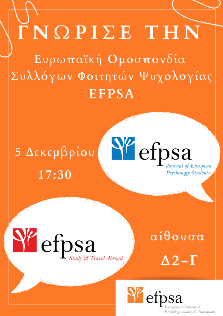 Παρουσίαση της EFPSA (Ευρωπαϊκής Ομοσπονδίας Συλλόγων Φοιτητών Ψυχολογίας)